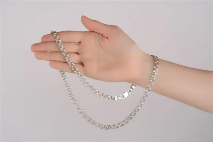 Прочнейшее плетение серебряной цепочки обеспечивает надежное соединение элементов. Однако, как и в случае с золотом, необходимо обращать внимание на застежки. Они должны быть визуально больше, чем ссылки.